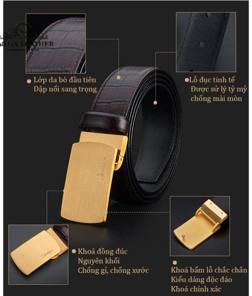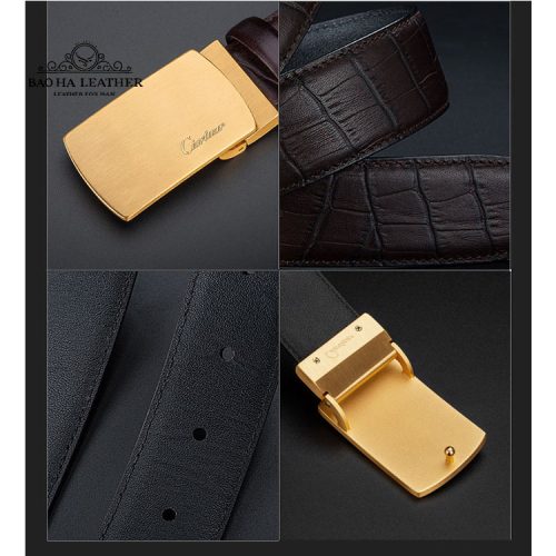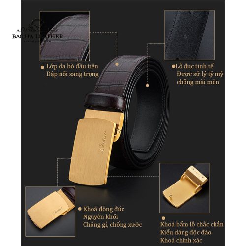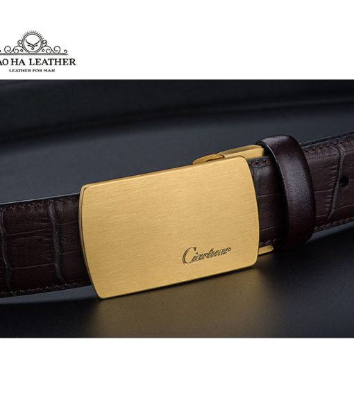 Thắt lưng nam khóa bấm cao cấp Ciartuar BH1335N với chất da bò tự nhiên cao cấp bề mặt dập nổi vân da cá sấu kết hợp với mặt khóa bấm màu vàng đồng nổi bật sang trọng.